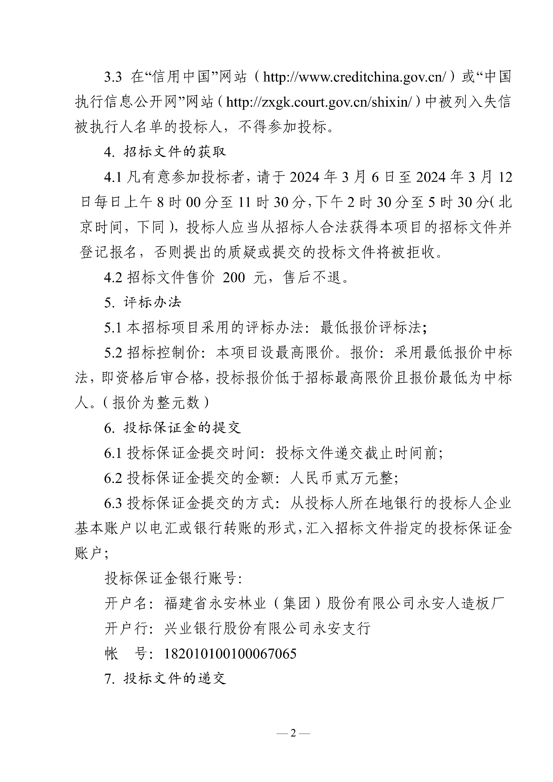 永安人造板廠石蠟采購項(xiàng)目招標(biāo)公告