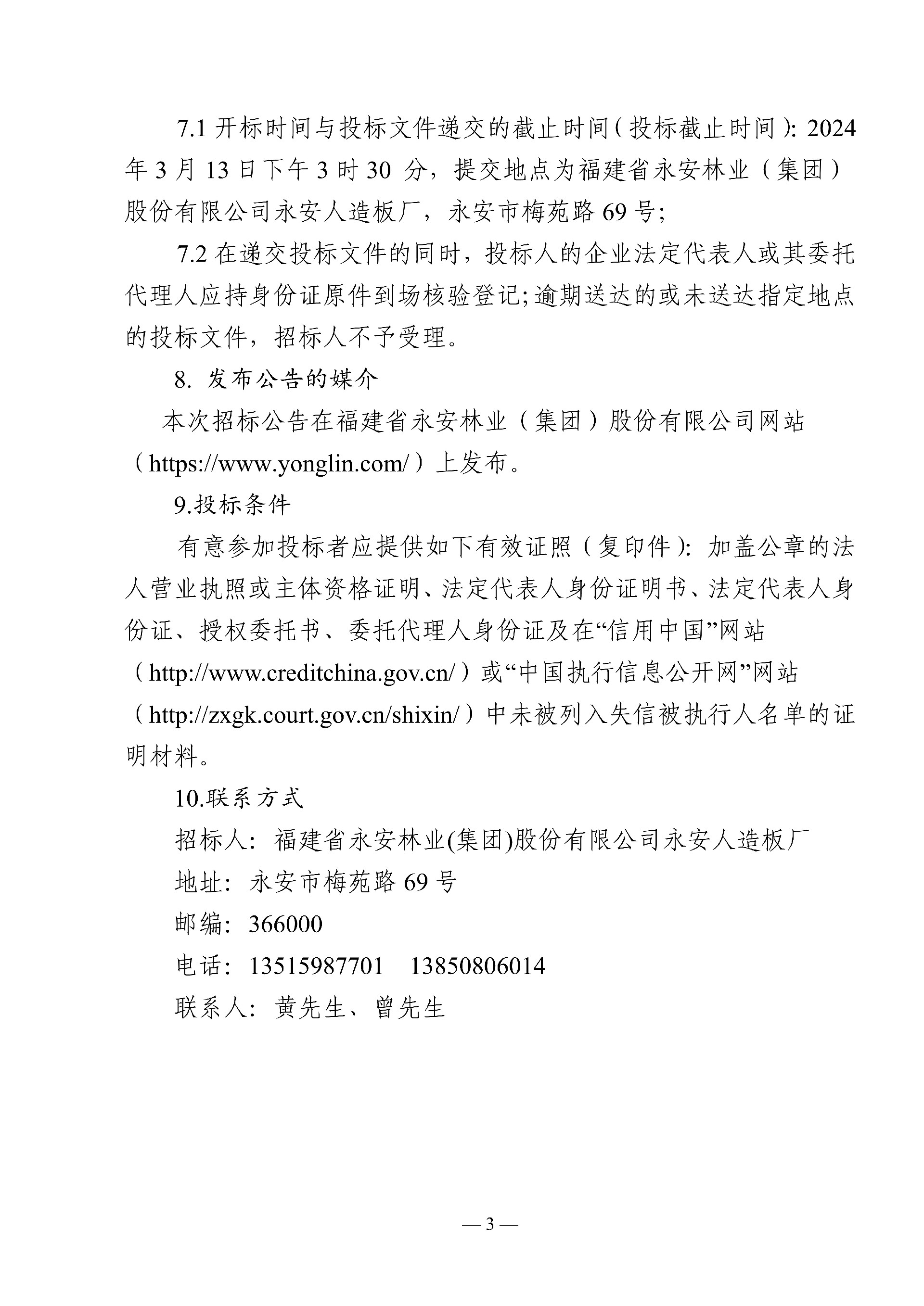 永安人造板廠三聚氰胺采購項(xiàng)目招標(biāo)公告