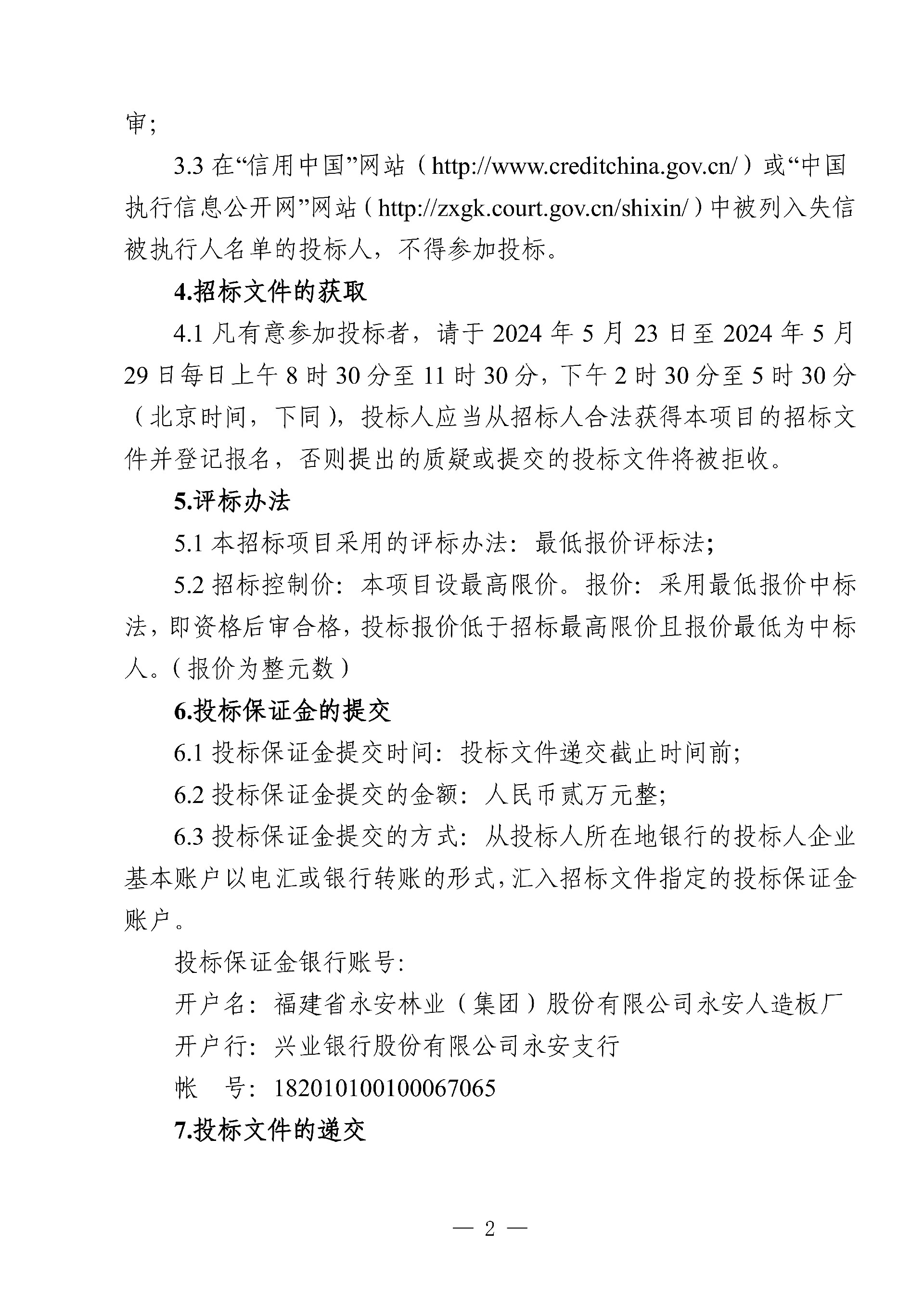 永安人造板廠工業(yè)甲醛溶液采購項目招標(biāo)公告