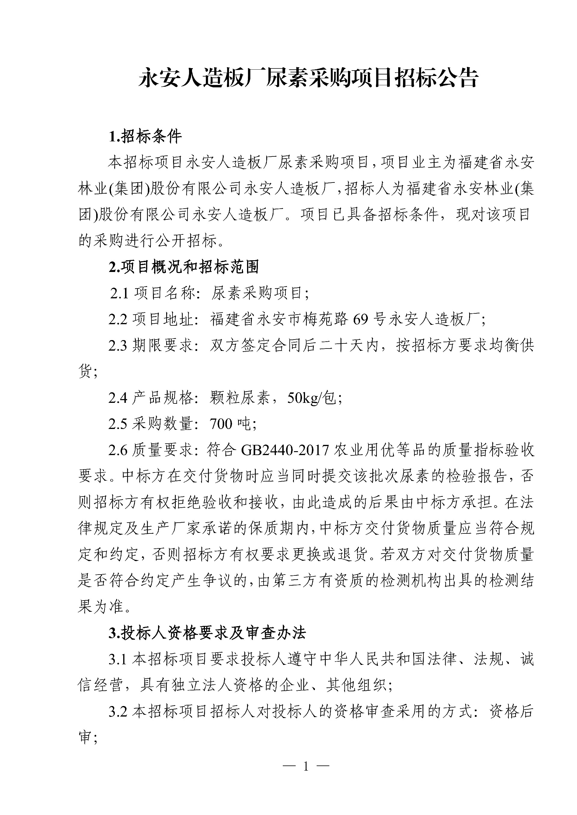 永安人造板廠尿素采購(gòu)項(xiàng)目招標(biāo)公告