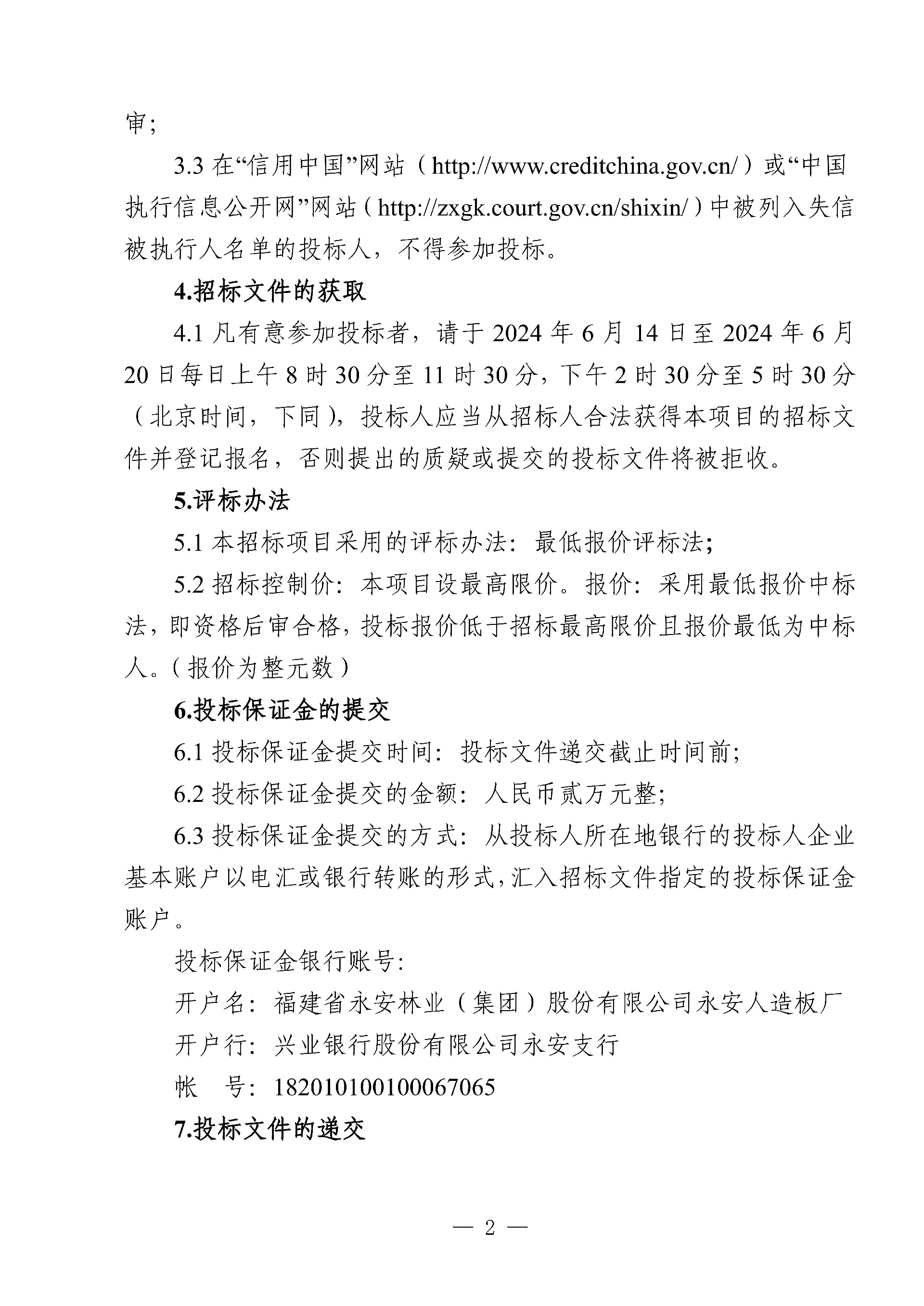 永安人造板廠三聚氰胺采購項(xiàng)目招標(biāo)公告