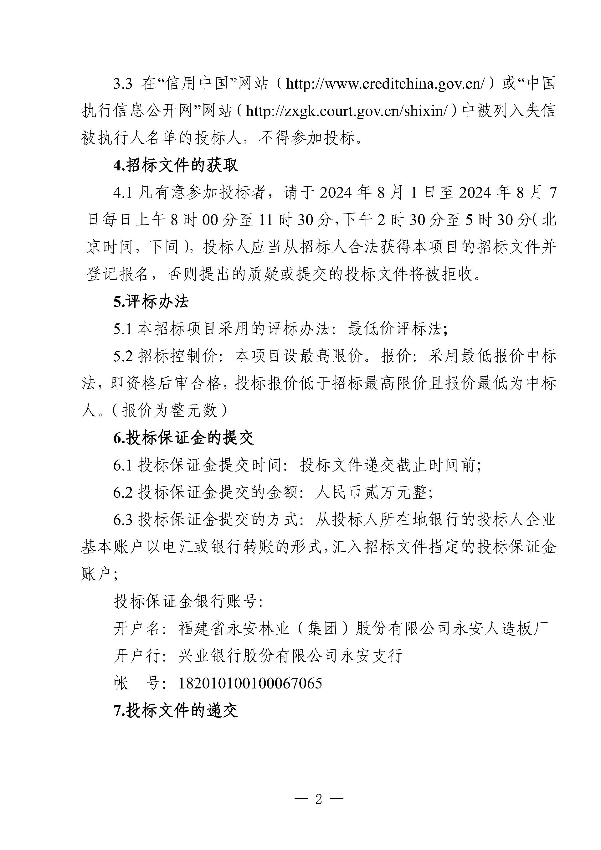 永安人造板廠工業(yè)甲醛溶液采購項(xiàng)目招標(biāo)公告