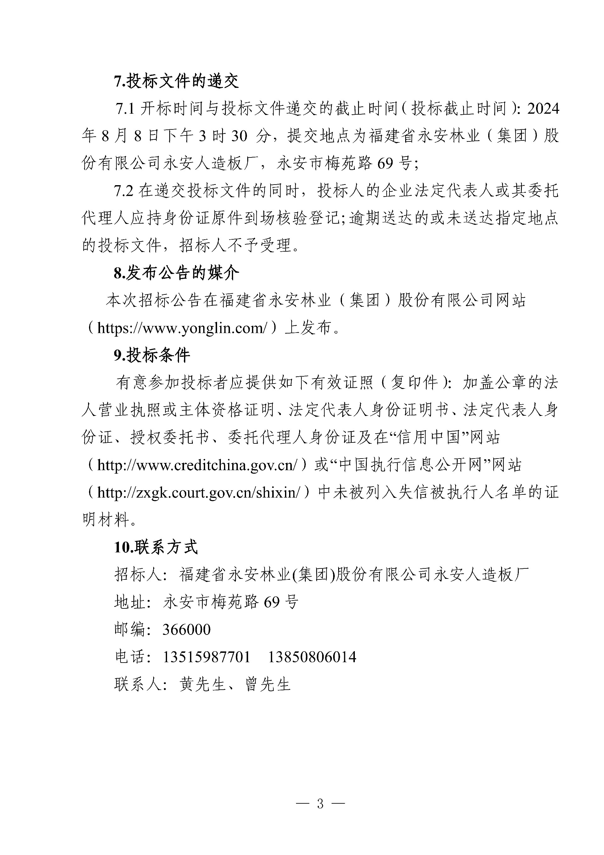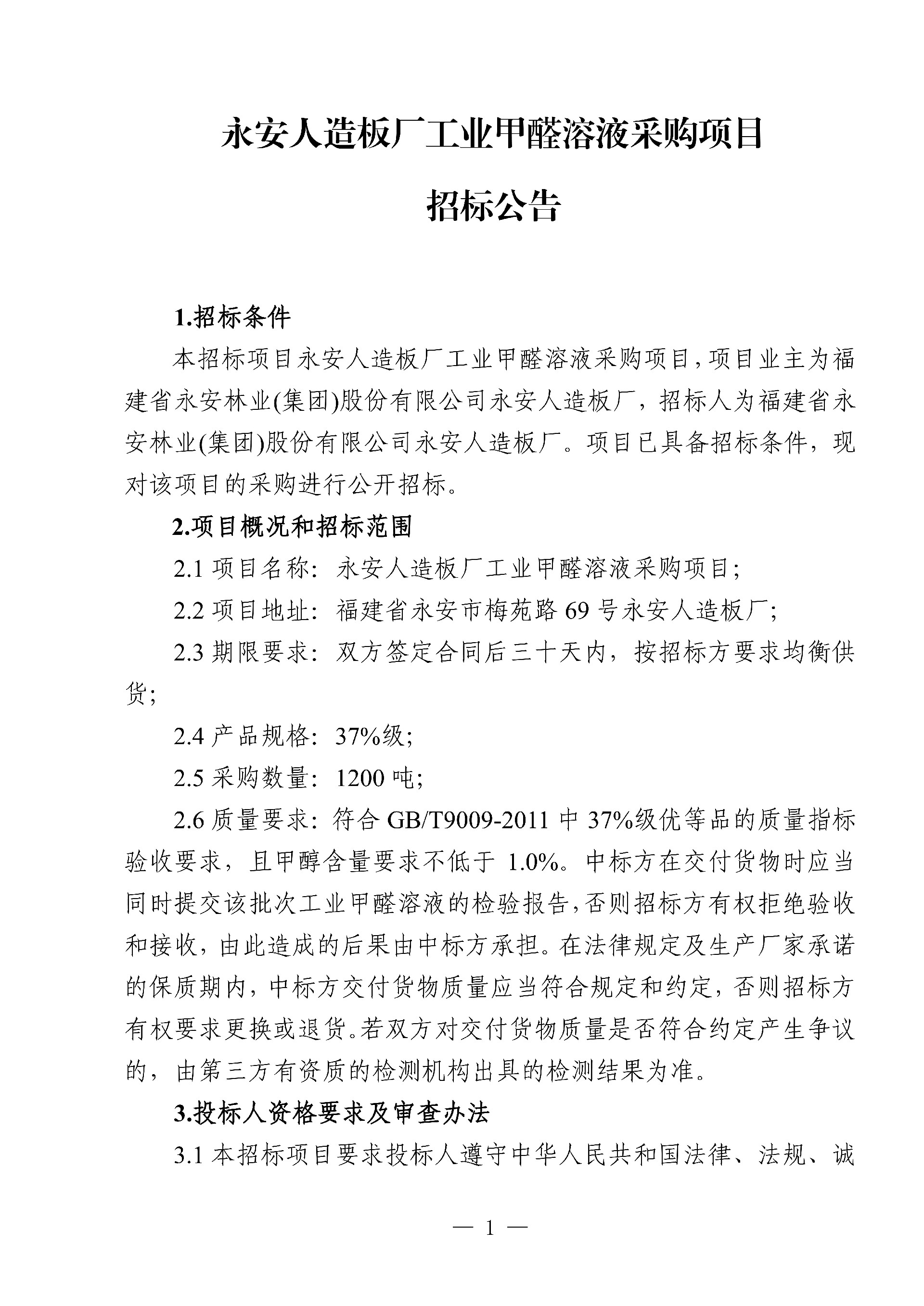 永安人造板廠工業(yè)甲醛溶液采購(gòu)項(xiàng)目 招標(biāo)公告