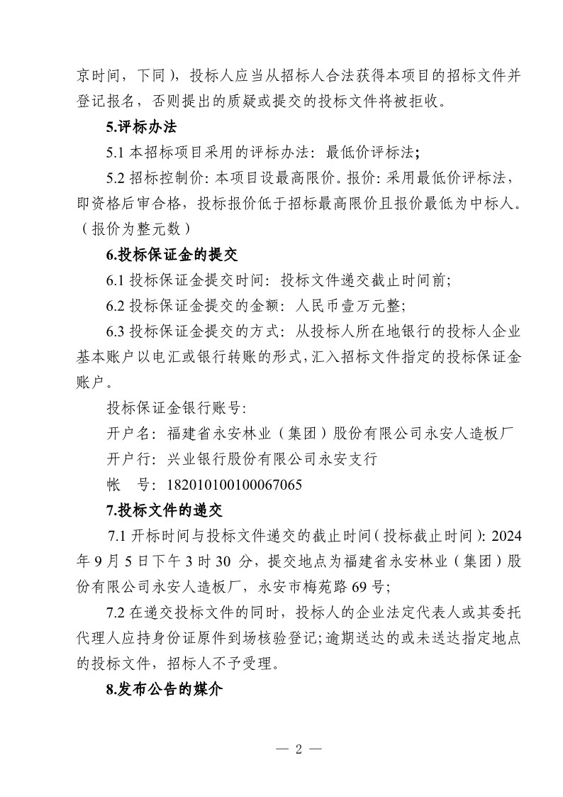 永安人造板廠工業(yè)甲醛溶液采購(gòu)項(xiàng)目招標(biāo)公告
