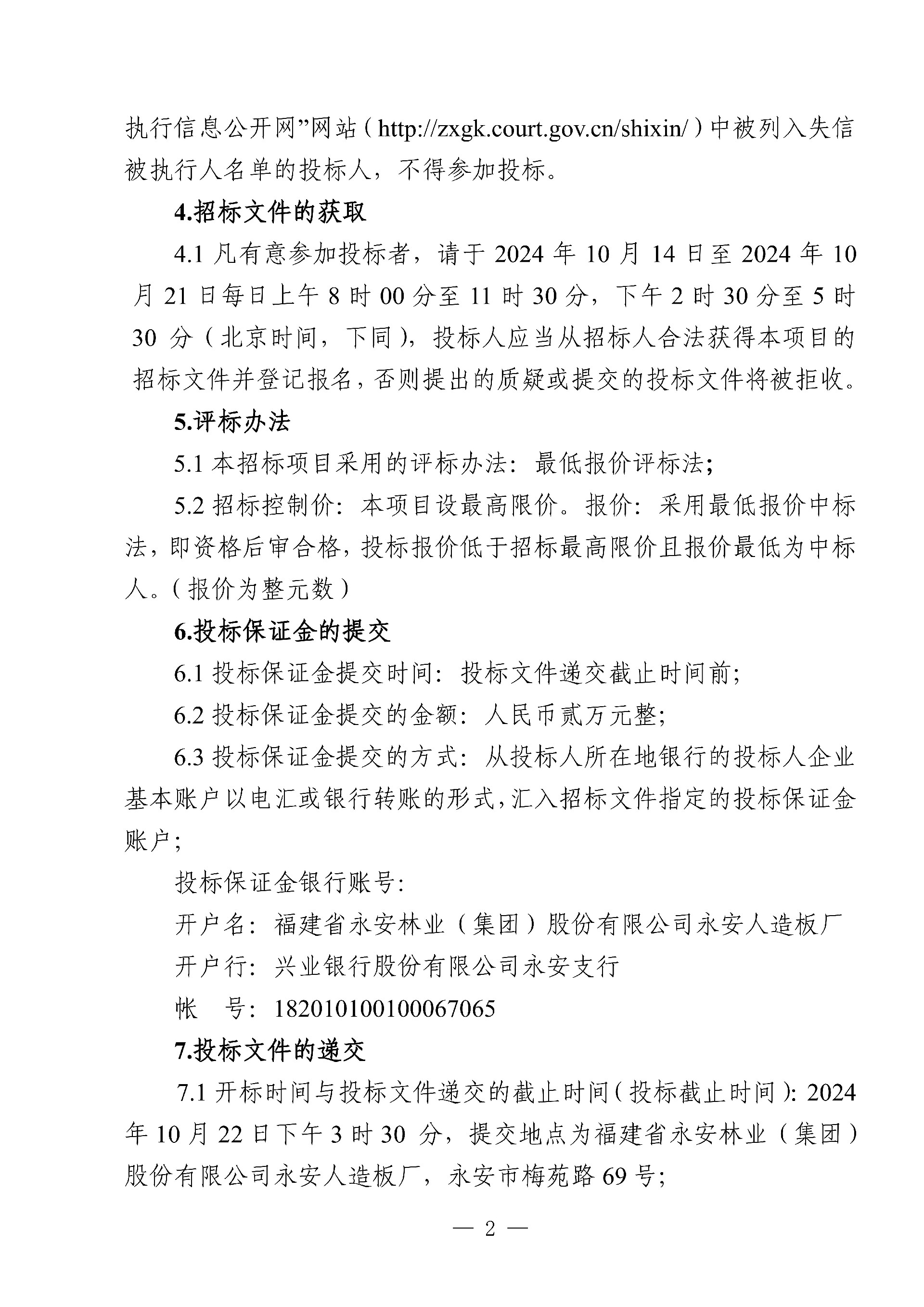 永安人造板廠三聚氰胺采購項目招標(biāo)公告