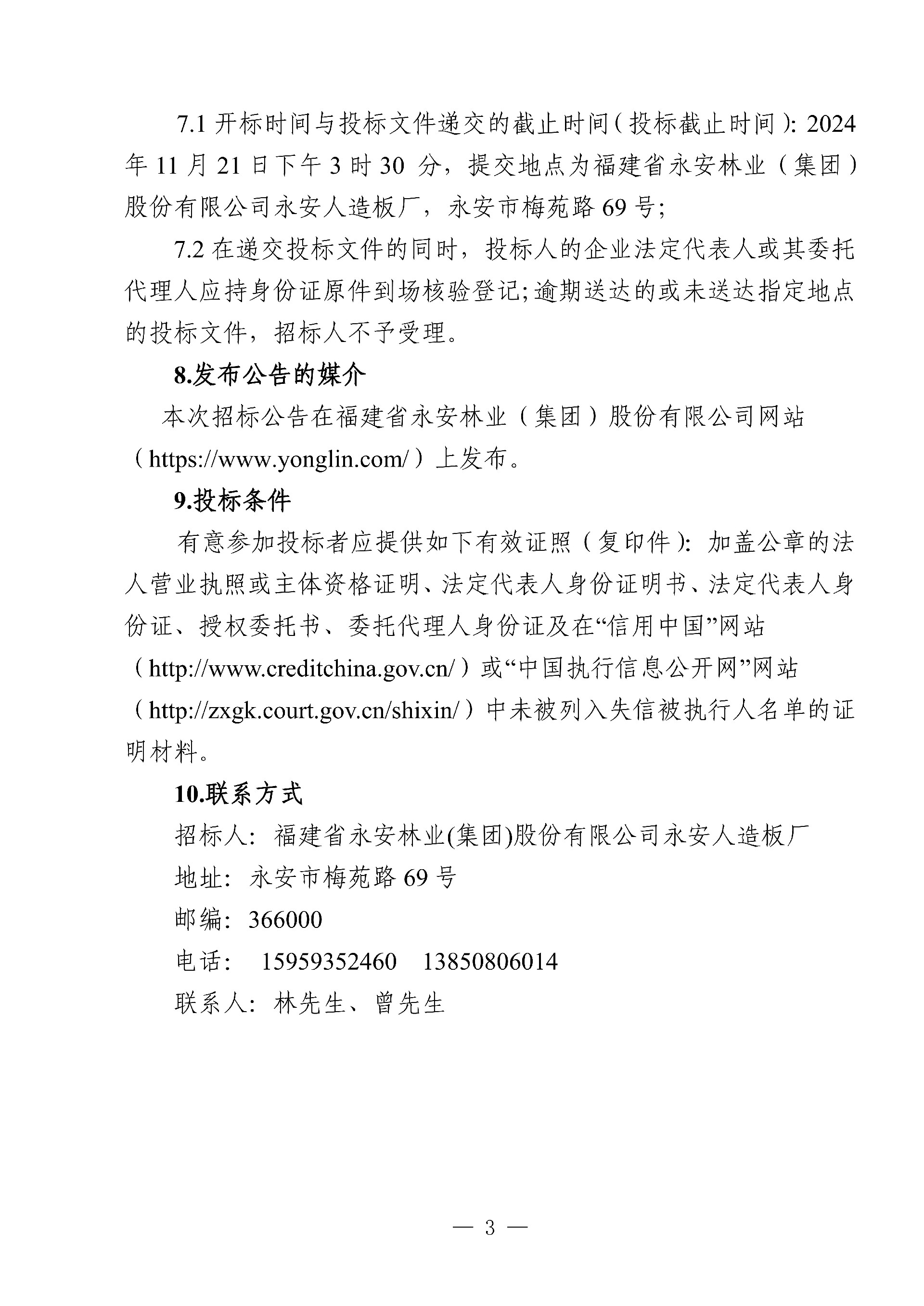 永安人造板廠工業(yè)甲醛溶液采購項目招標公告