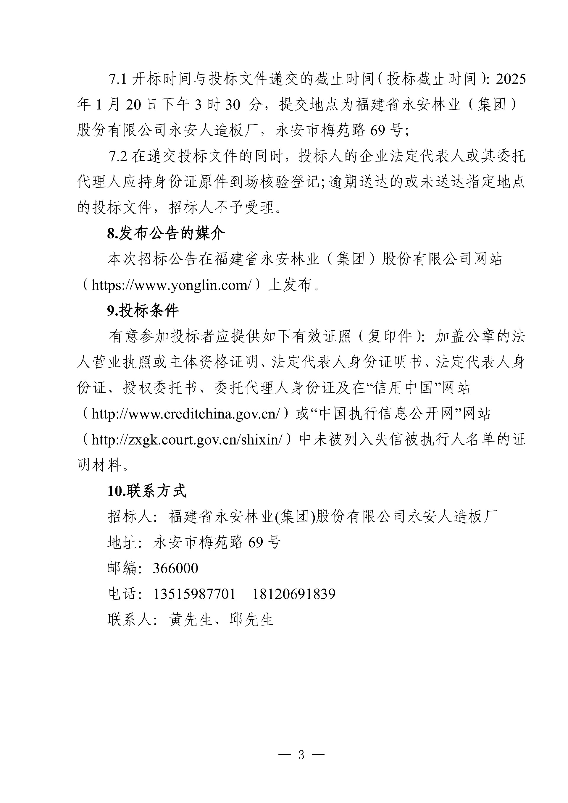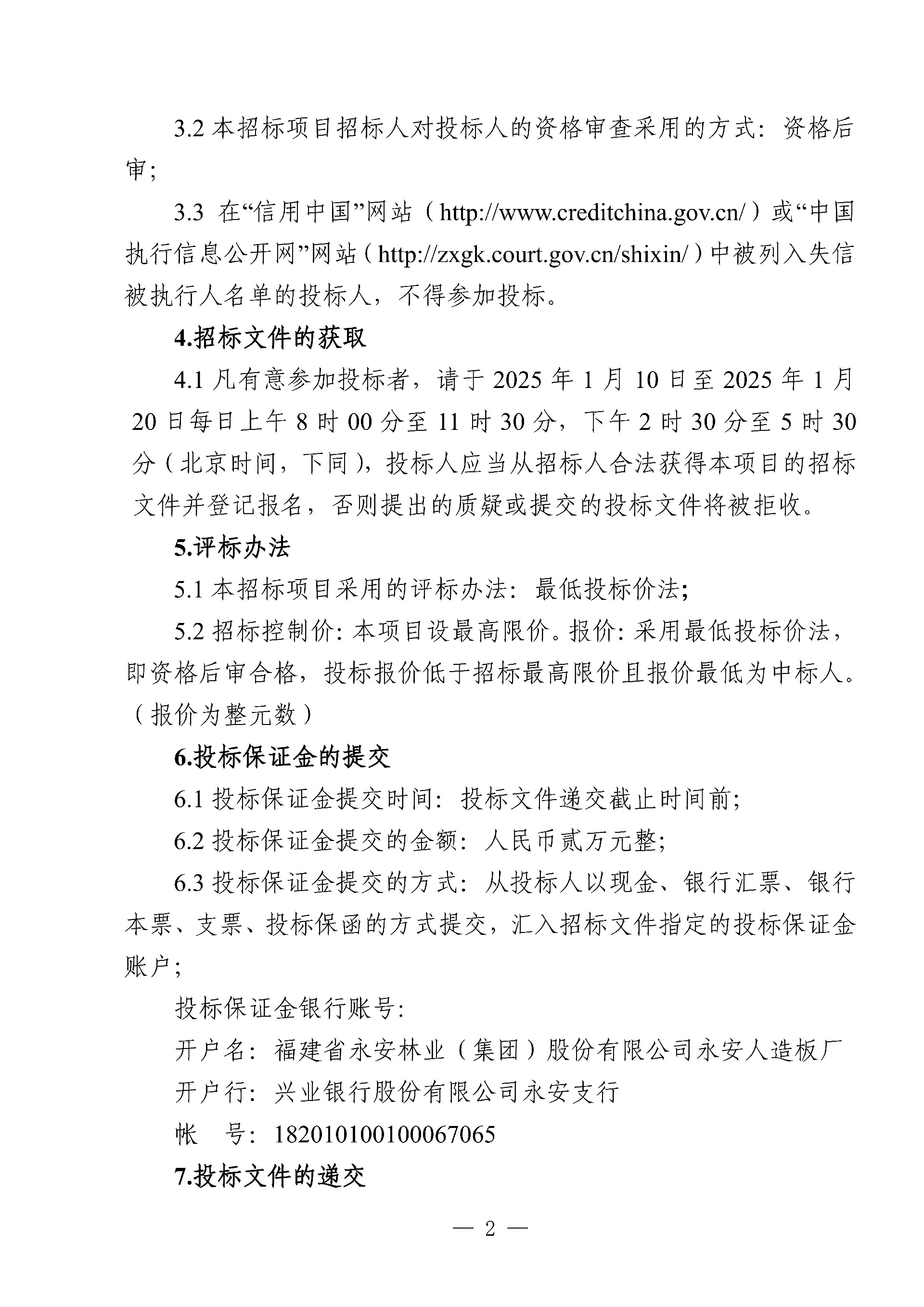 永安人造板廠工業(yè)甲醛溶液采購項目招標公告