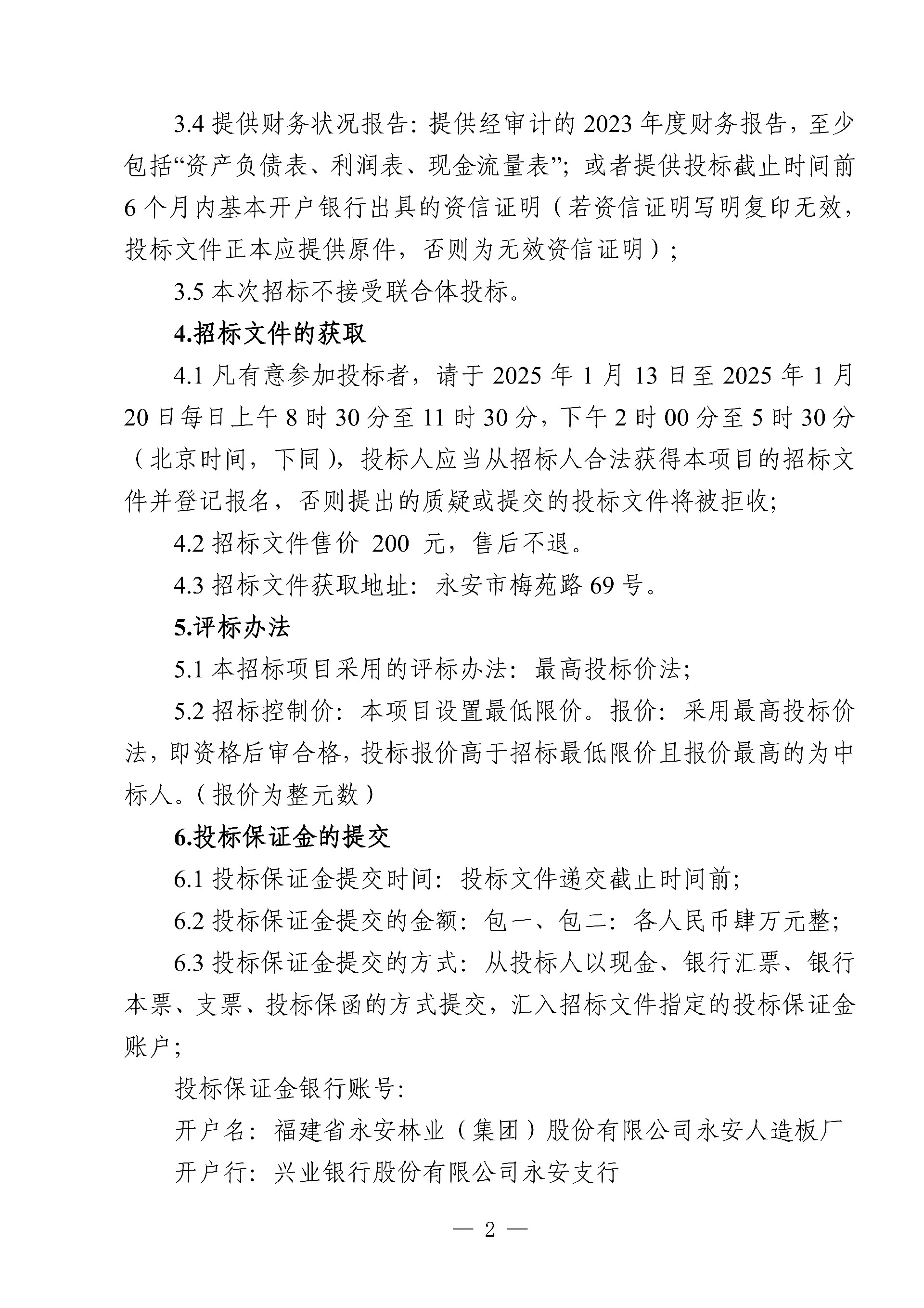 永安人造板廠生產(chǎn)廢料對外銷售項目(二次招標(biāo))招標(biāo)公告