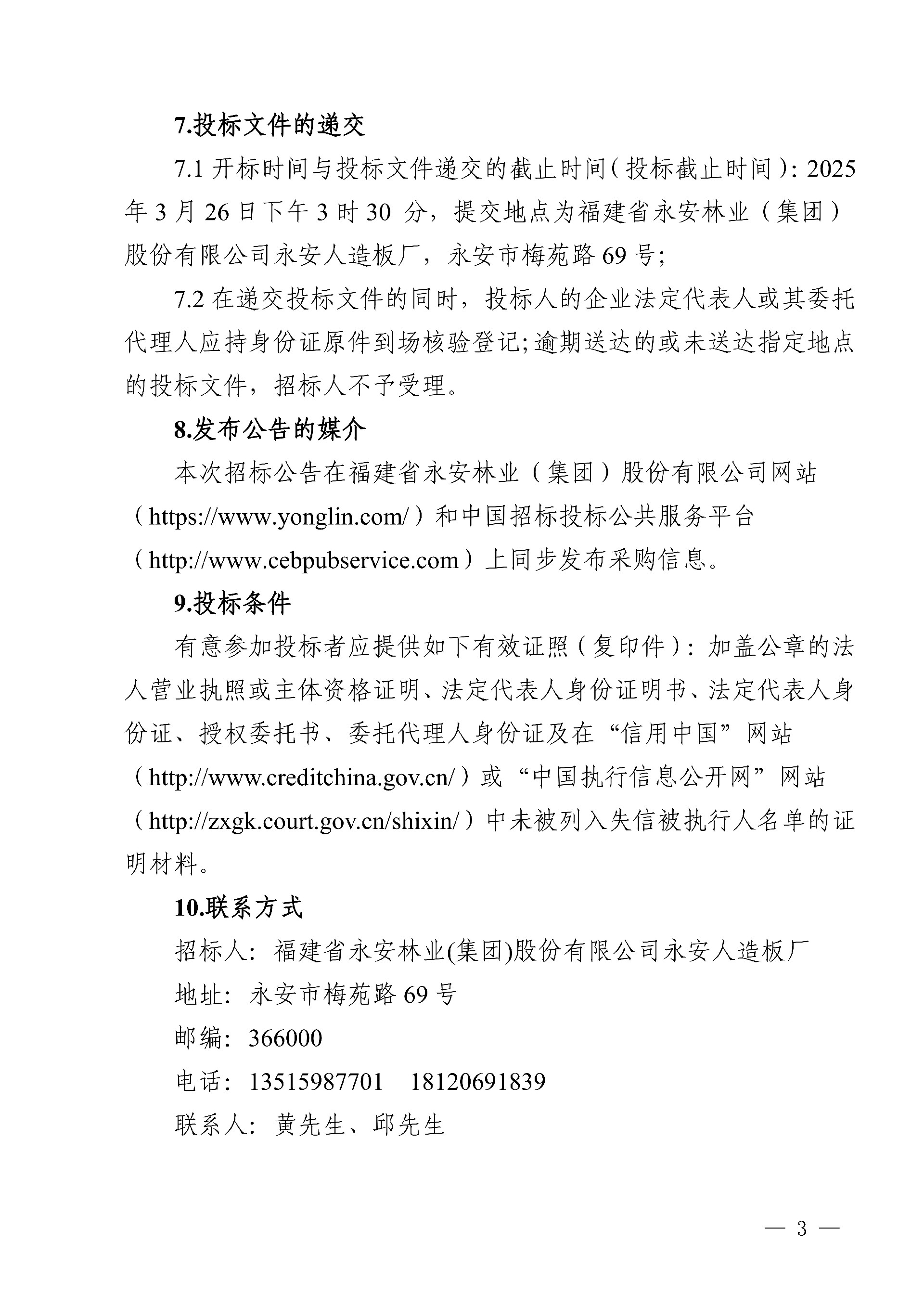 永安人造板廠尿素采購(gòu)項(xiàng)目招標(biāo)公告