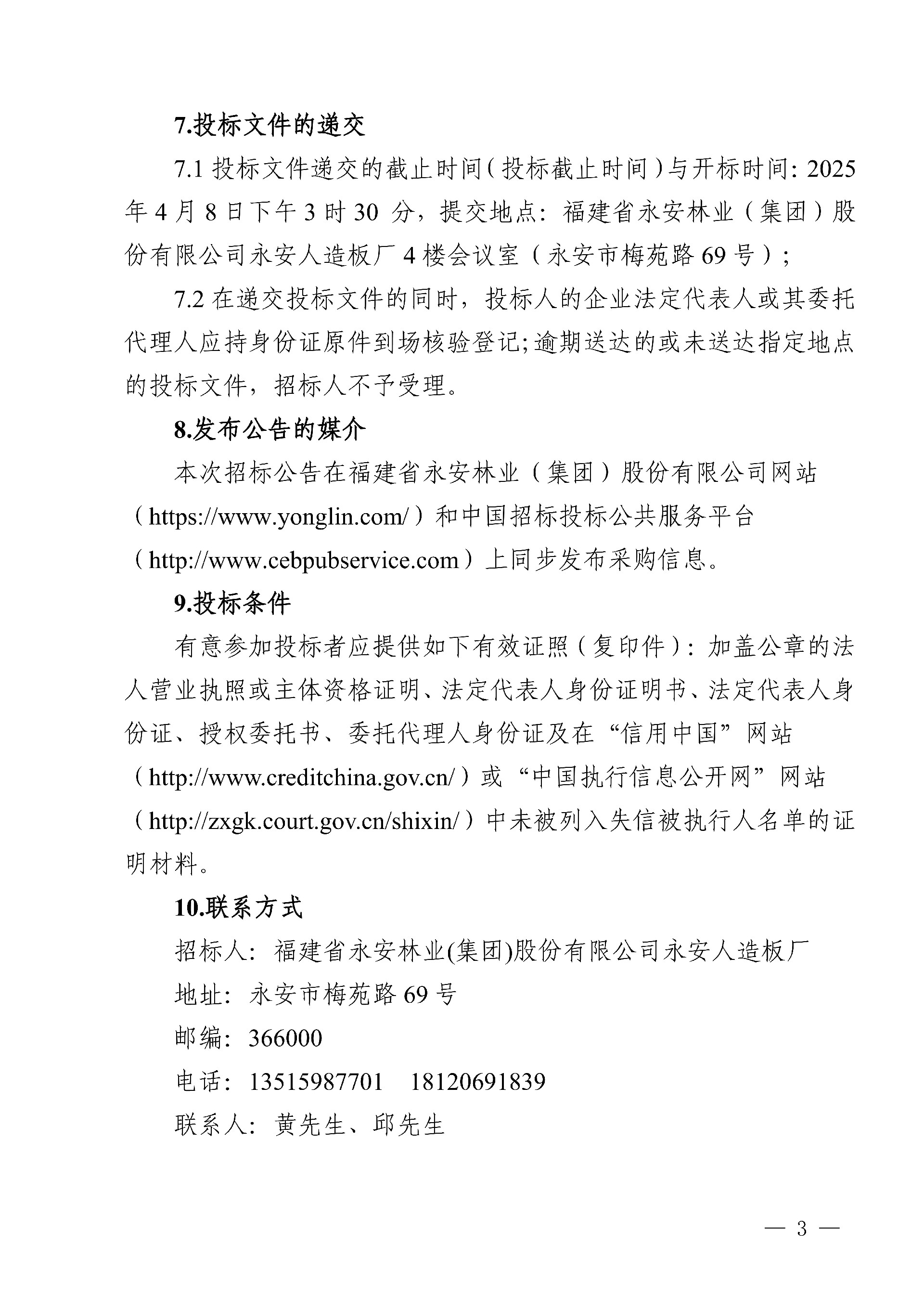 永安人造板廠三聚氰胺采購項(xiàng)目招標(biāo)公告