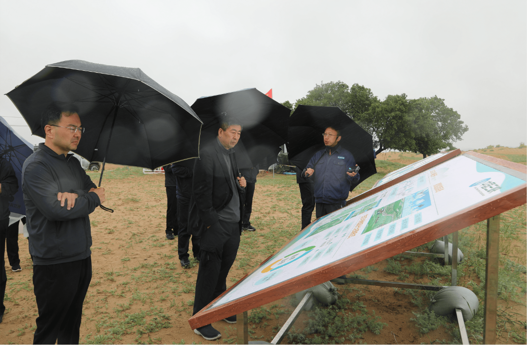 又訊:6月15日,集團(tuán)黨委領(lǐng)導(dǎo)班子一行還冒雨赴由中國(guó)三峽集團(tuán)和中國(guó)林業(yè)集團(tuán)共同負(fù)責(zé)實(shí)施的內(nèi)蒙古渾善達(dá)克-科爾沁沙地南緣綜合治理一期項(xiàng)目試驗(yàn)示范區(qū)開(kāi)展調(diào)研。