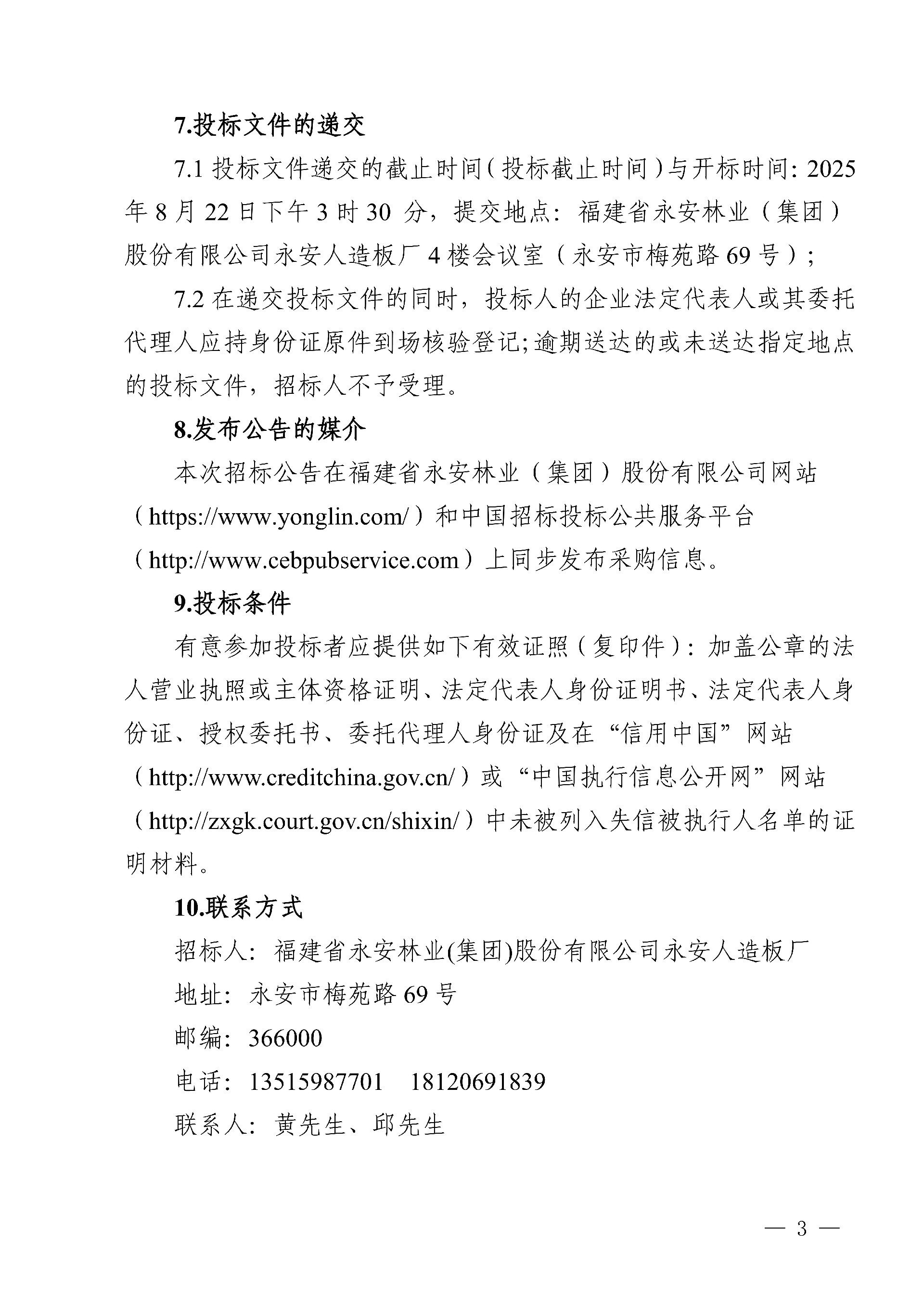 永安人造板廠三聚氰胺采購項目招標公告