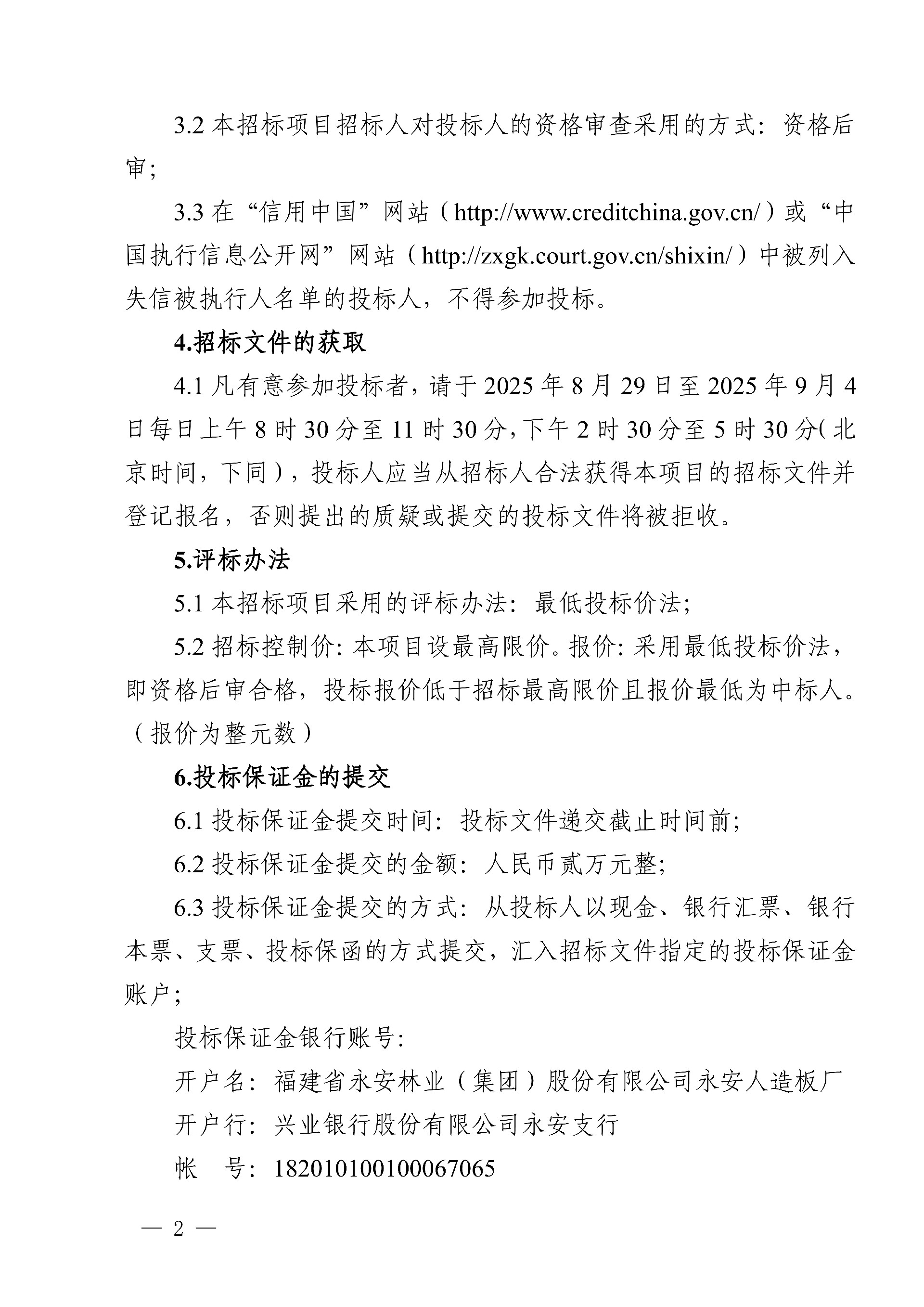 永安人造板廠工業(yè)甲醛溶液采購項目招標(biāo)公告