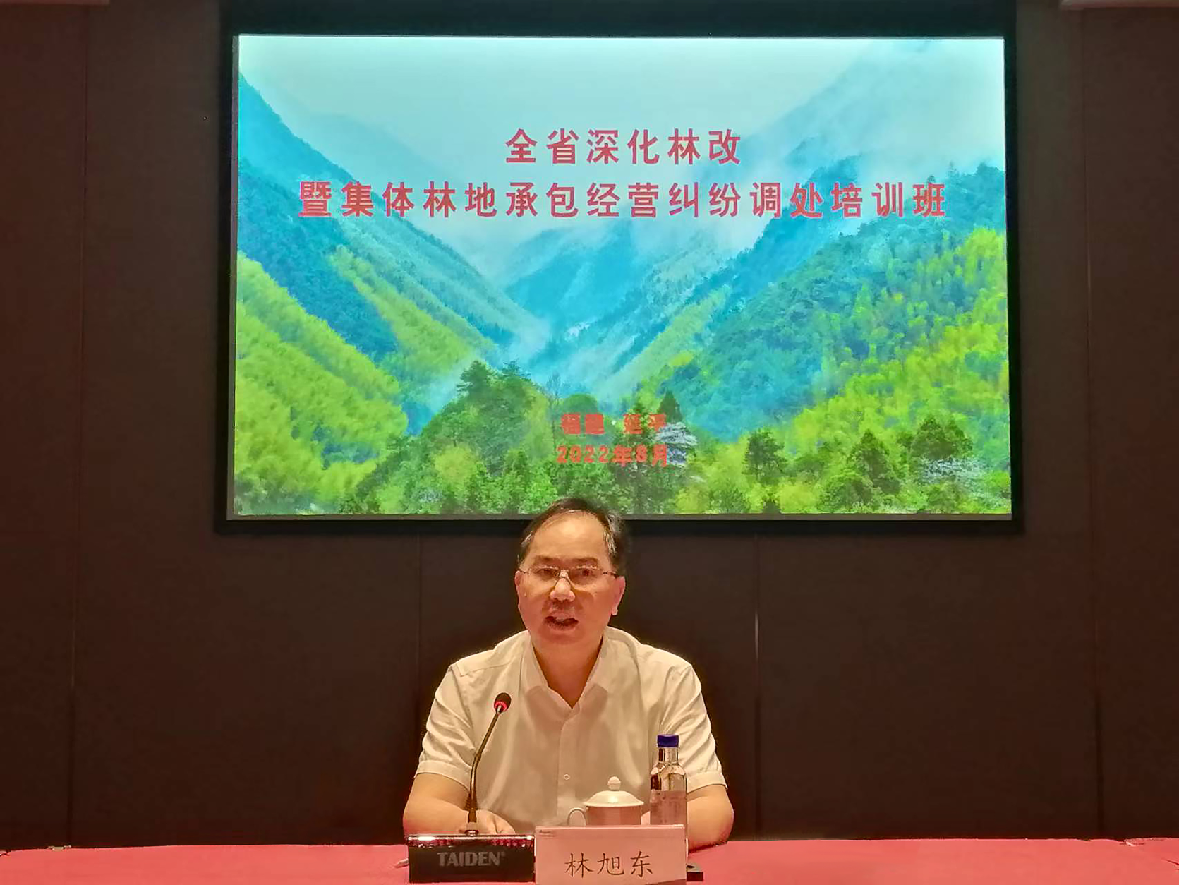 為貫徹落實(shí)全省林業(yè)改革發(fā)展會(huì)議精神,全面抓好省委省政府《關(guān)于持續(xù)推進(jìn)林業(yè)改革發(fā)展的意見》落地見效,8月9-11日,全省深化林改暨集體林地承包經(jīng)營糾紛調(diào)處培訓(xùn)班在延平區(qū)舉辦,九市一區(qū)林業(yè)主管部門分管領(lǐng)導(dǎo)、林改工作(承包經(jīng)營糾紛調(diào)處工作)負(fù)責(zé)人、20個(gè)重點(diǎn)縣林業(yè)主管部門和局有關(guān)處室局站負(fù)責(zé)人等50人參加培訓(xùn)。