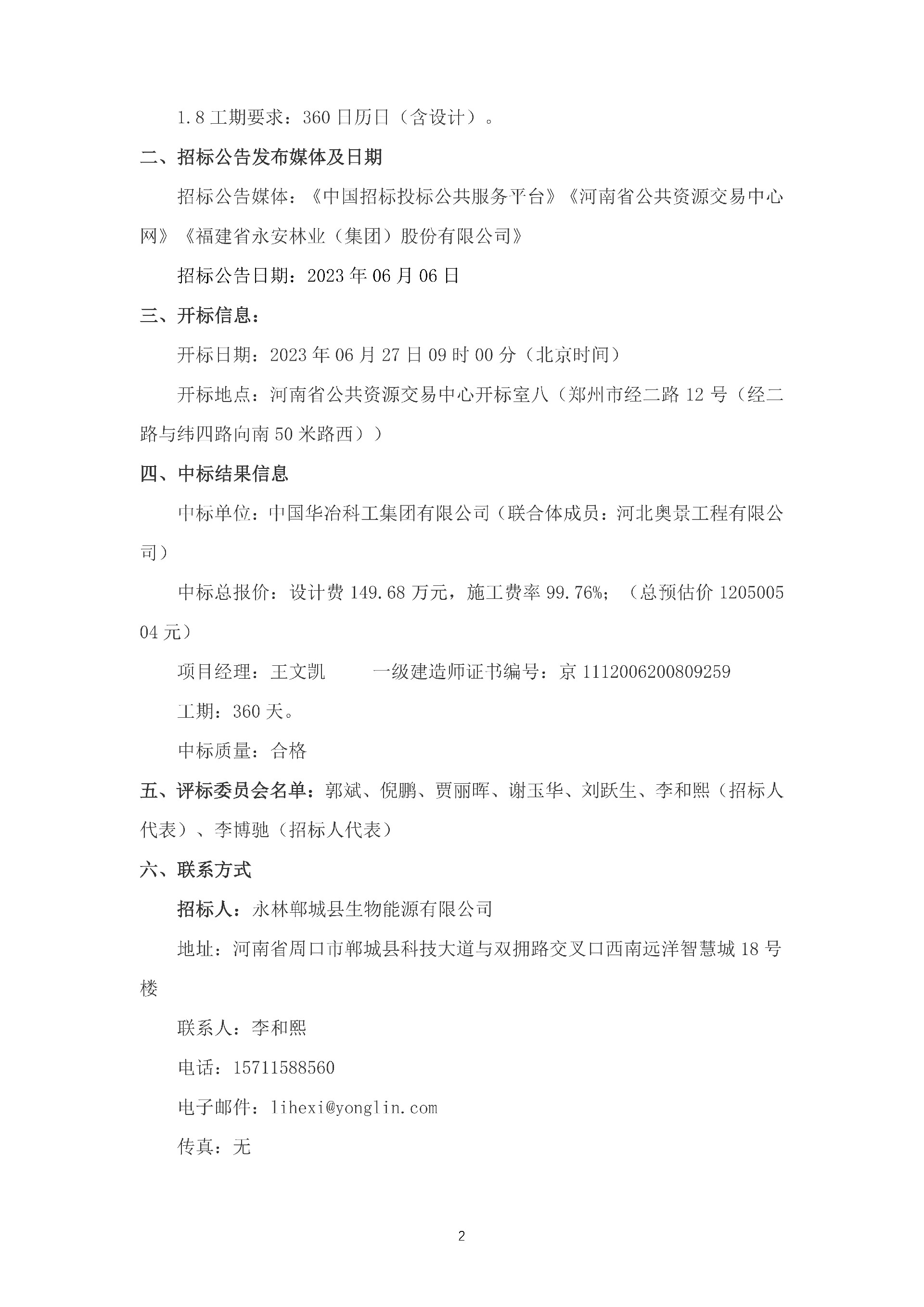 永安林業(yè)鄲城縣生物質(zhì)能循環(huán)利用項(xiàng)目設(shè)計(jì)施工總承包招標(biāo)中標(biāo)結(jié)果公告